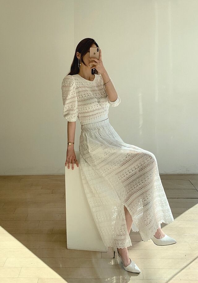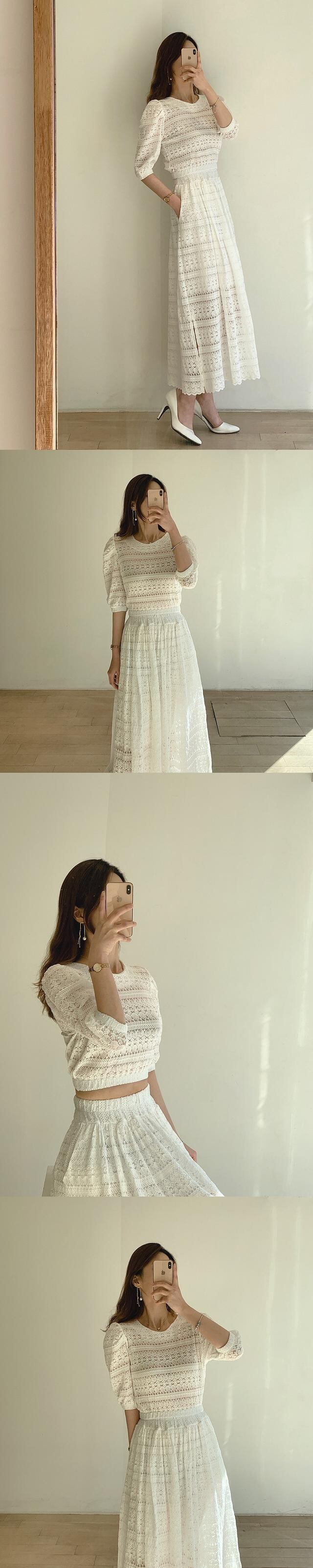 サマーラウンドネックスリーブレースブラウス スカート レディース 夏物 Oネック 韓国婦人59177032817