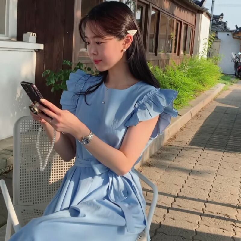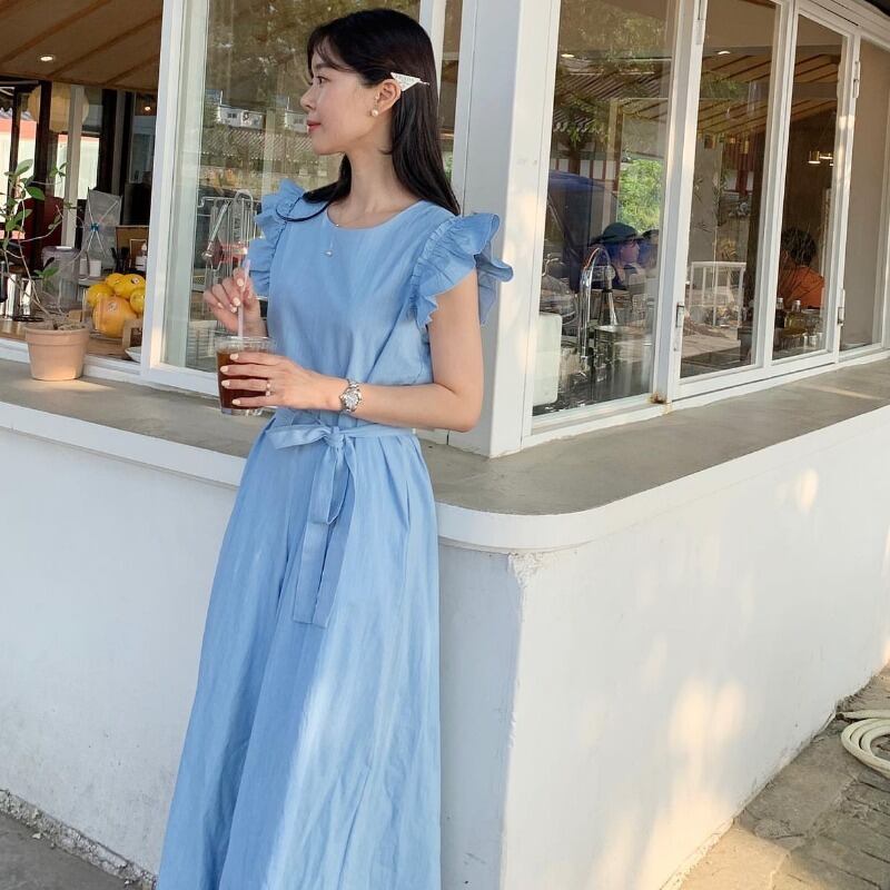 サマーサイドウェストベルト ホワイトロングドレス レディース エレガント 夏物 ハーネス 韓国婦人41244583325