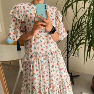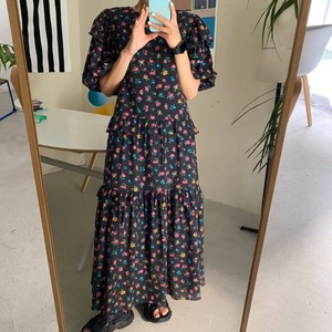 サマーフローラルスタンダードスタイルスリーブラッフルドレス ロングスカート レトロ レース 夏物 花柄 韓国婦人78596516466