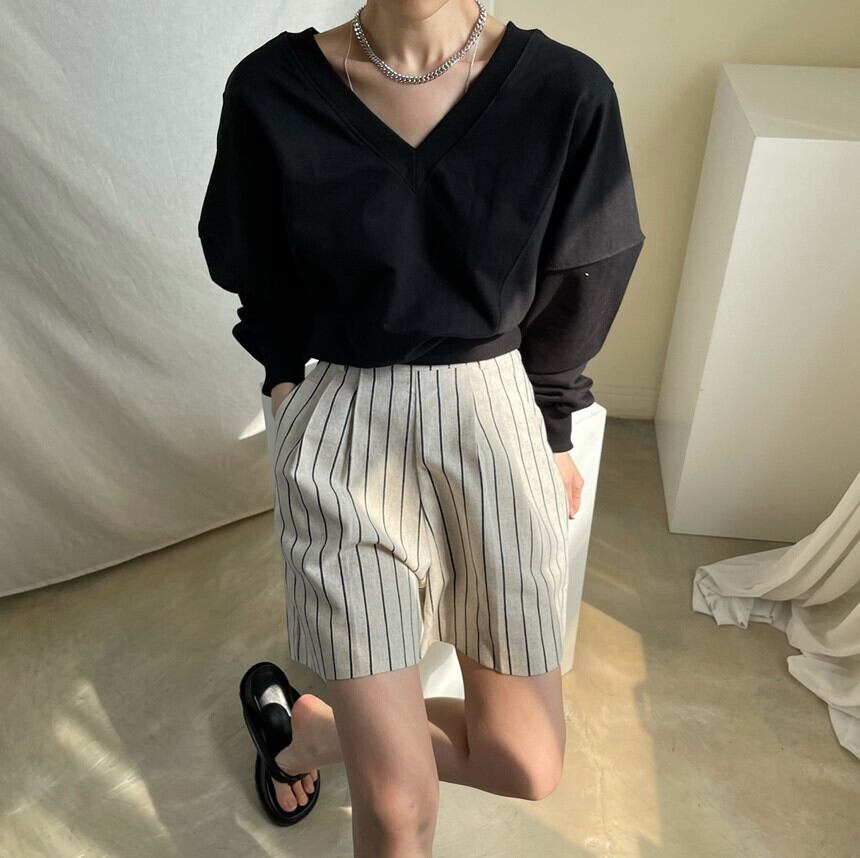 オータムカジュアルVネックスリーブルーズプルオーバー セーター トップス レディース 秋物 韓国婦人33415639179