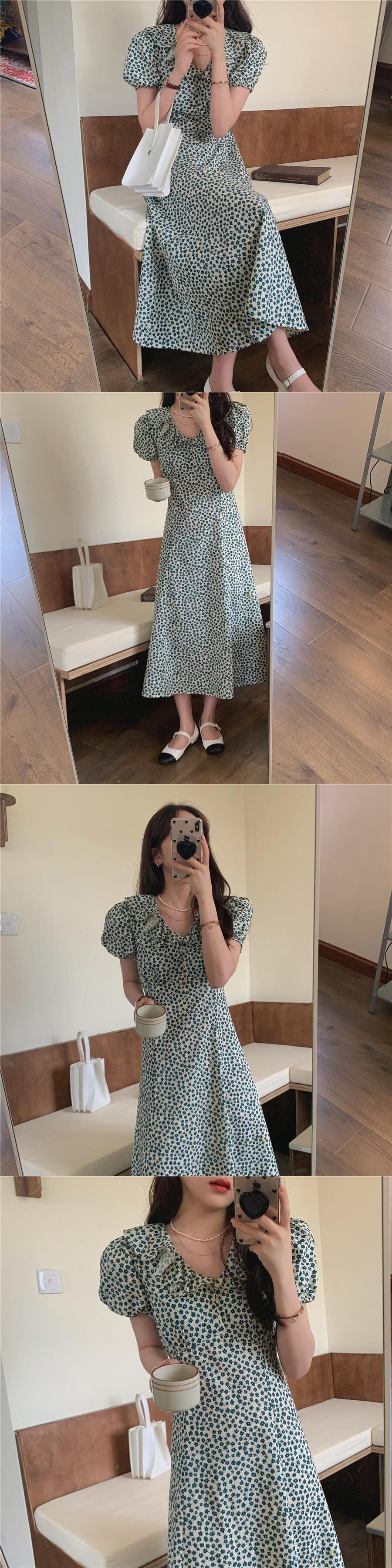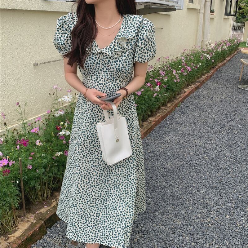 スタンダードフローラルスリーブドレス サマースカート ロングシフォン レトロ 夏物 花柄 韓国婦人40634149920