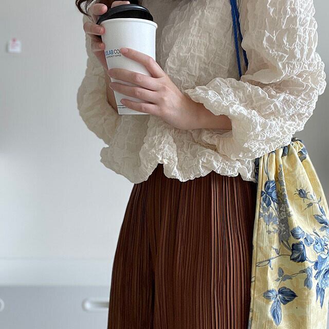 スタンダードオータムFlowerデザイン スリーブルーズシャツ トップス レディース レトロ 秋物 フラワーデザイン 韓国婦人53646954461