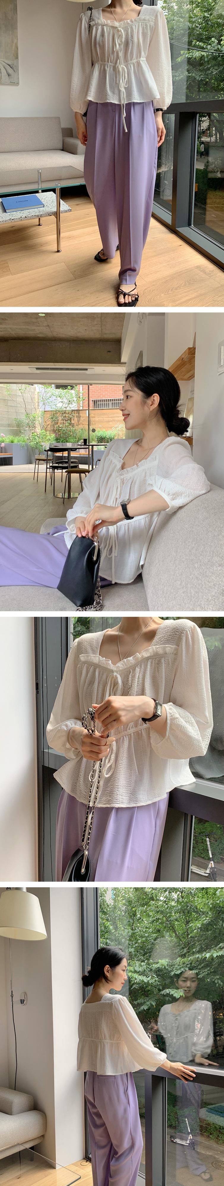 リボンシフォンシャツ トップス レディース 大人ガーリー スウィート キュート カジュアル スクウェア 韓国婦人31879407510