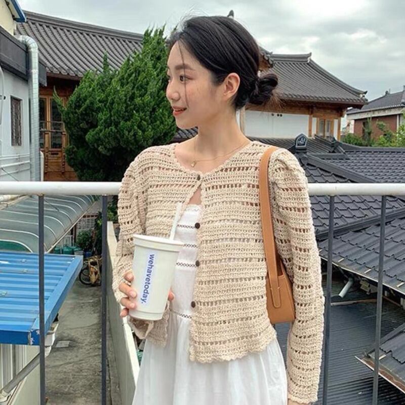 スタンダード薄手スタイルニットカーディガン ロング レトロ 韓国婦人52450480469