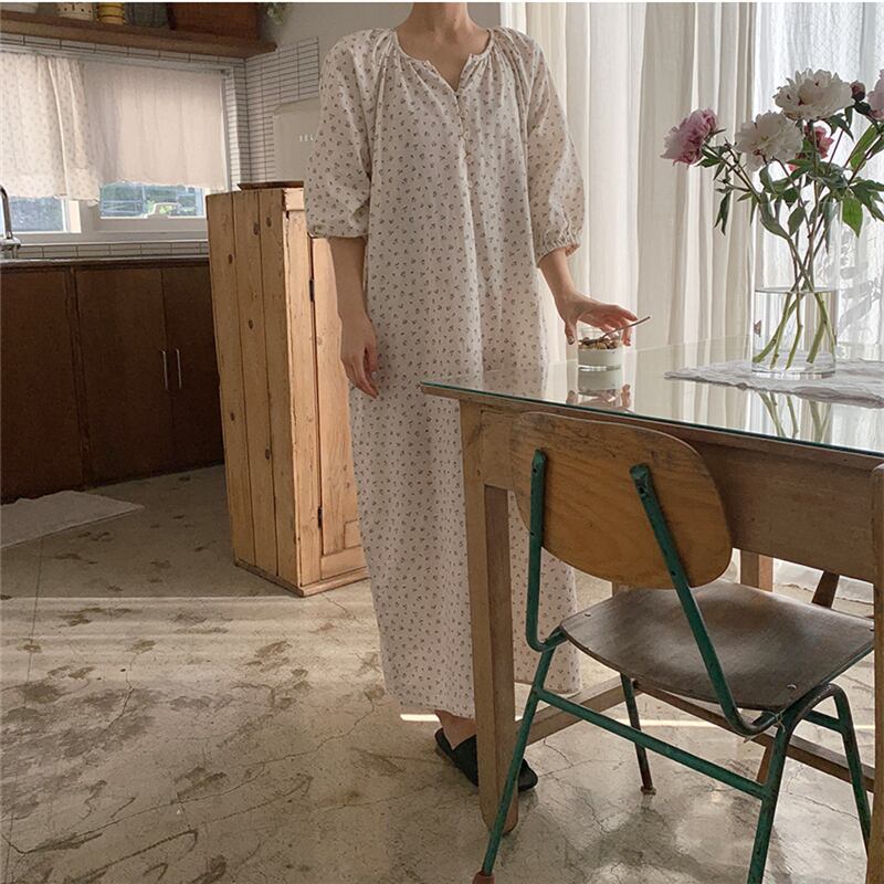 サマースタイルVネックルーズフローラルロングドレス 大人ガーリー スウィート キュート カジュアル 夏物 花柄 韓国婦人97066700757