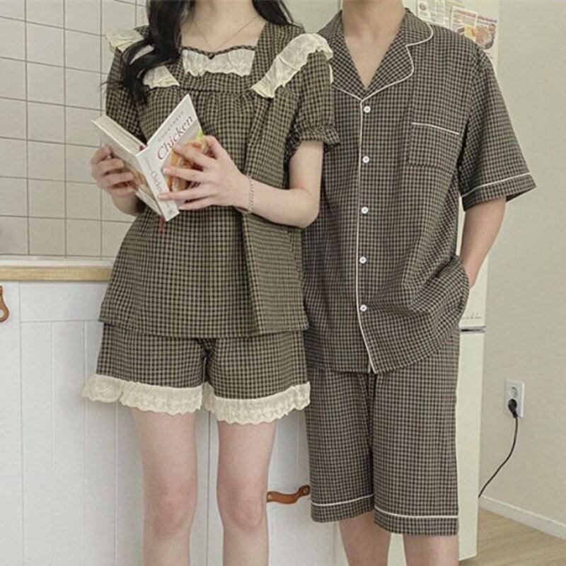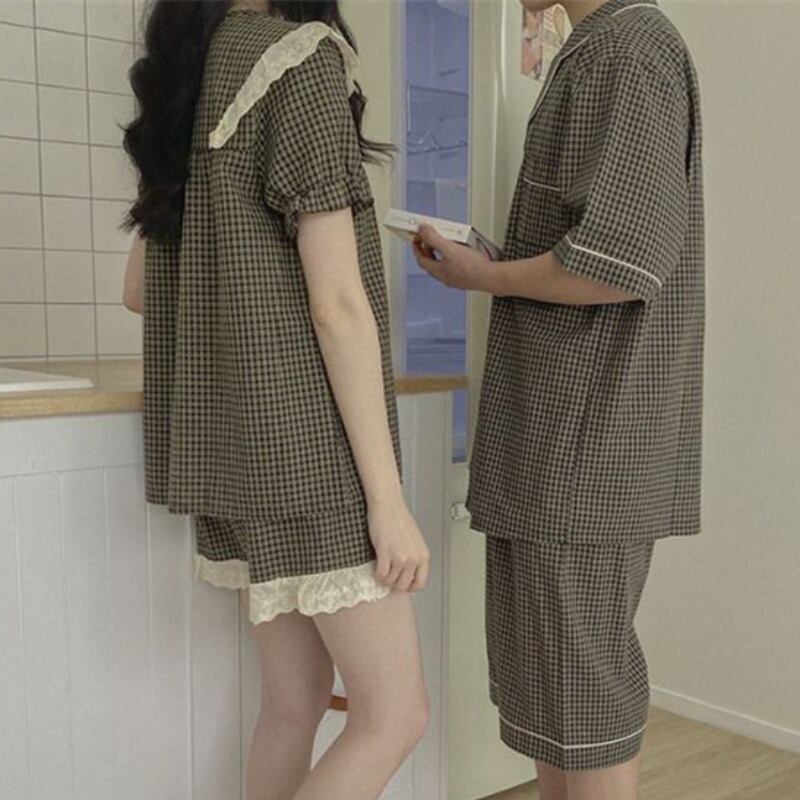 スタイルレースカラー格子柄トップス ショーツ レディース 大人ガーリー スウィート キュート カジュアル ブルマー スクウェア 韓国婦人92134152857