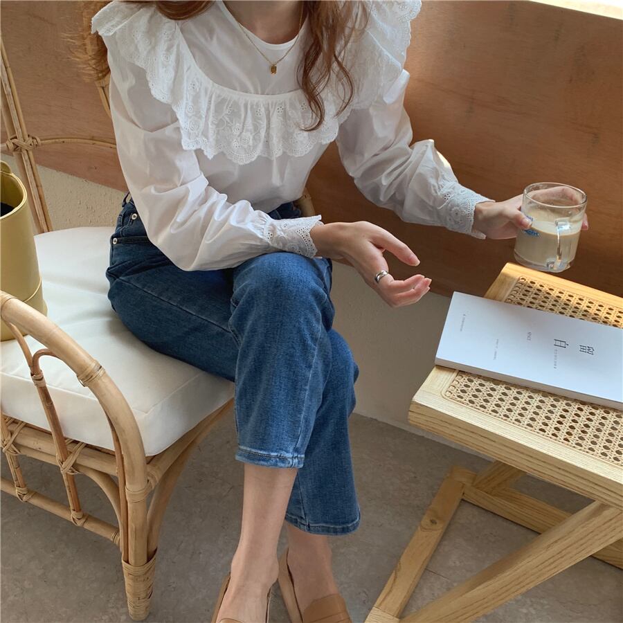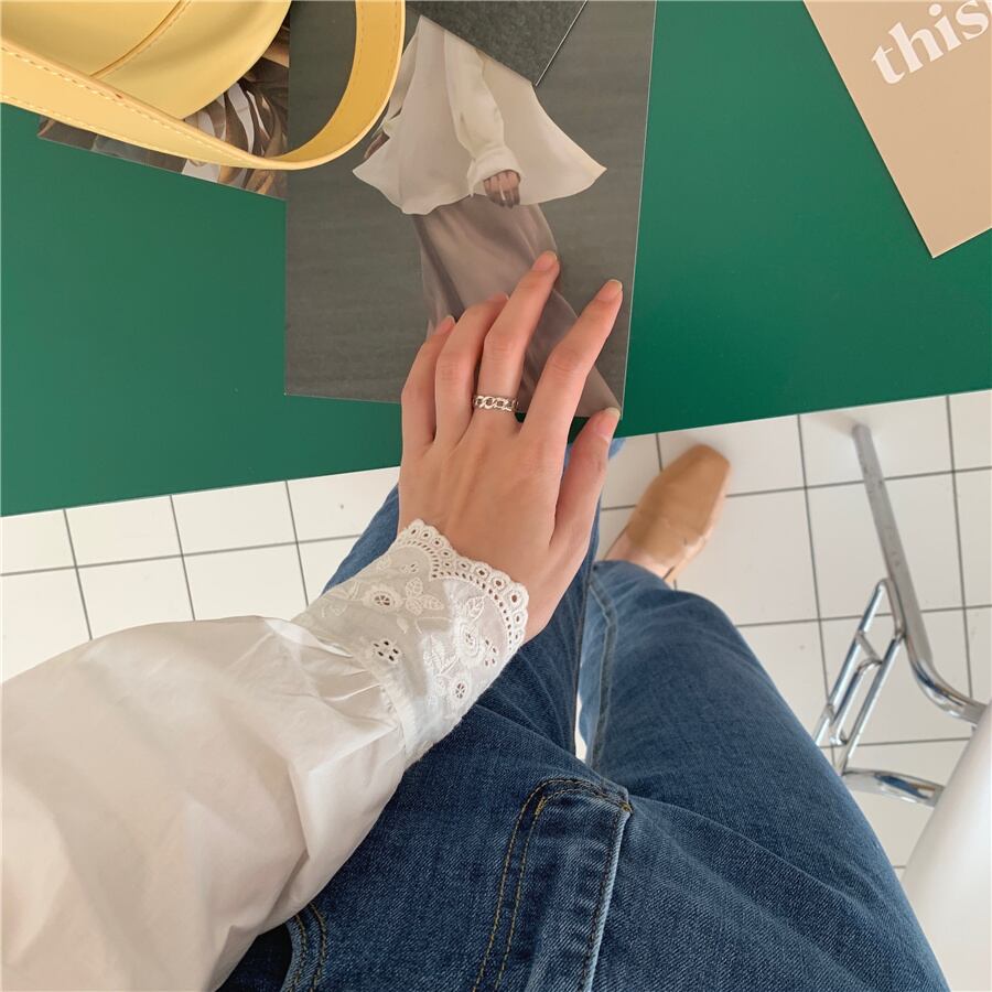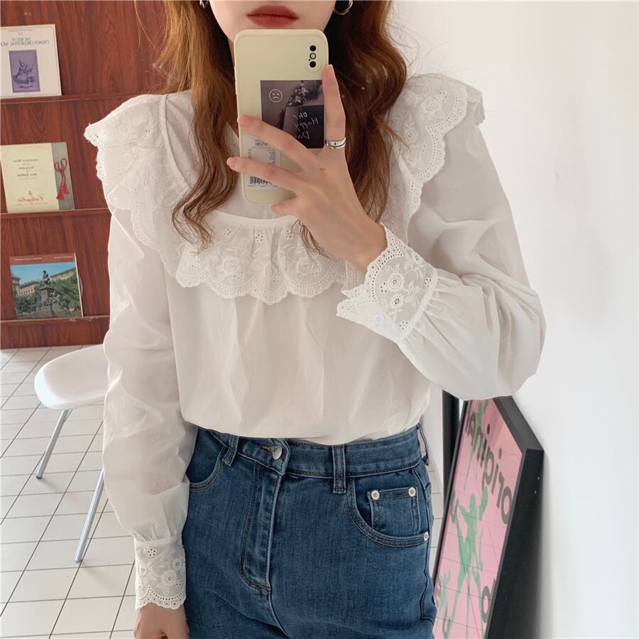 スプリングレースシャツ ラウンドネック ロング 大人ガーリー スウィート キュート カジュアル 春物 Oネック 韓国婦人94216891562