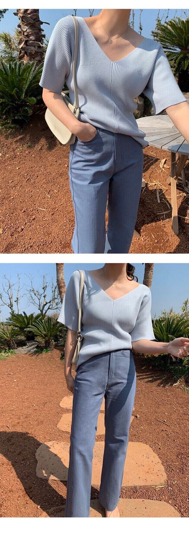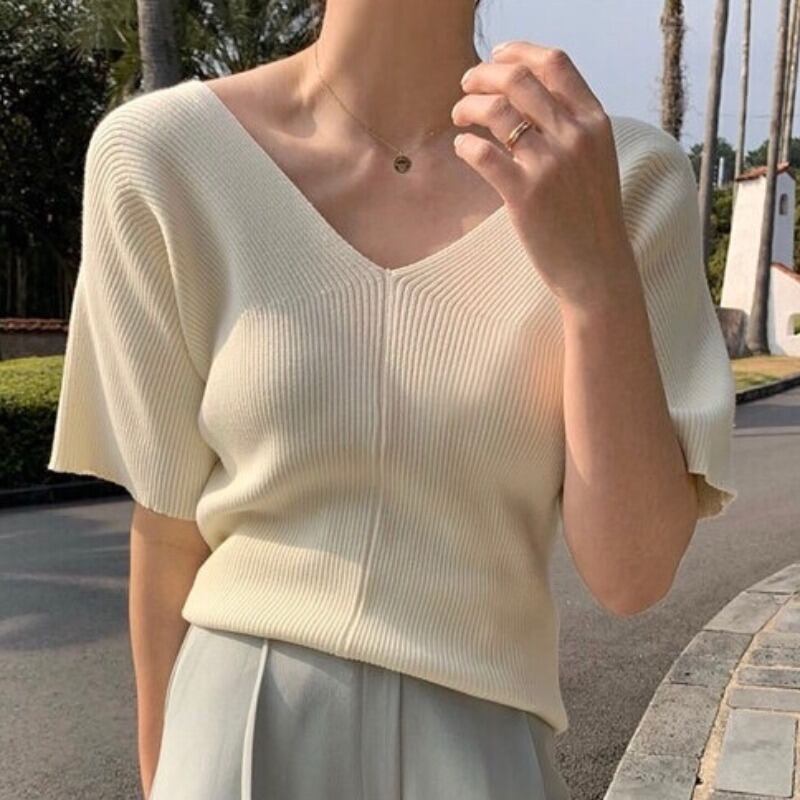サマーVネックニットセーター 薄手ルーズスタイルシャツ 夏物 韓国婦人31972635606