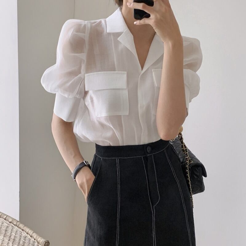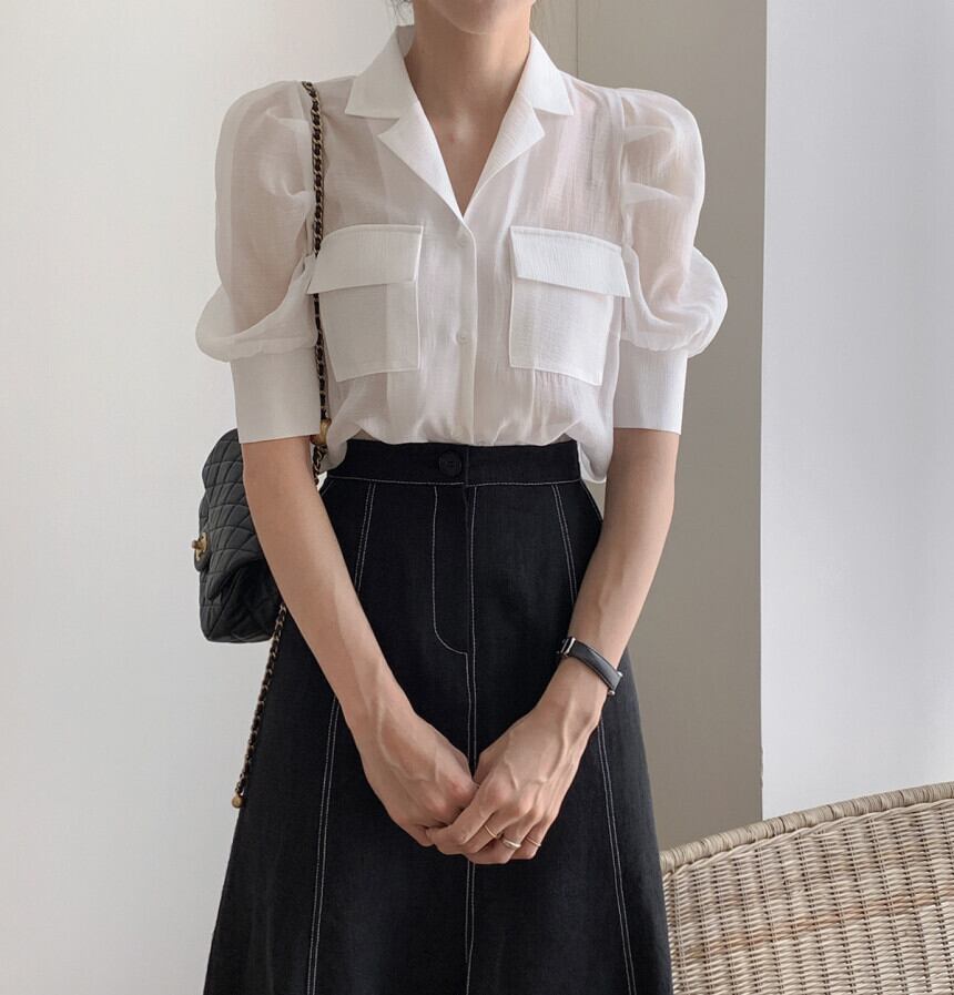 スリーブシャツ スカート サマー 夏物 ステッチ 韓国婦人31020542277