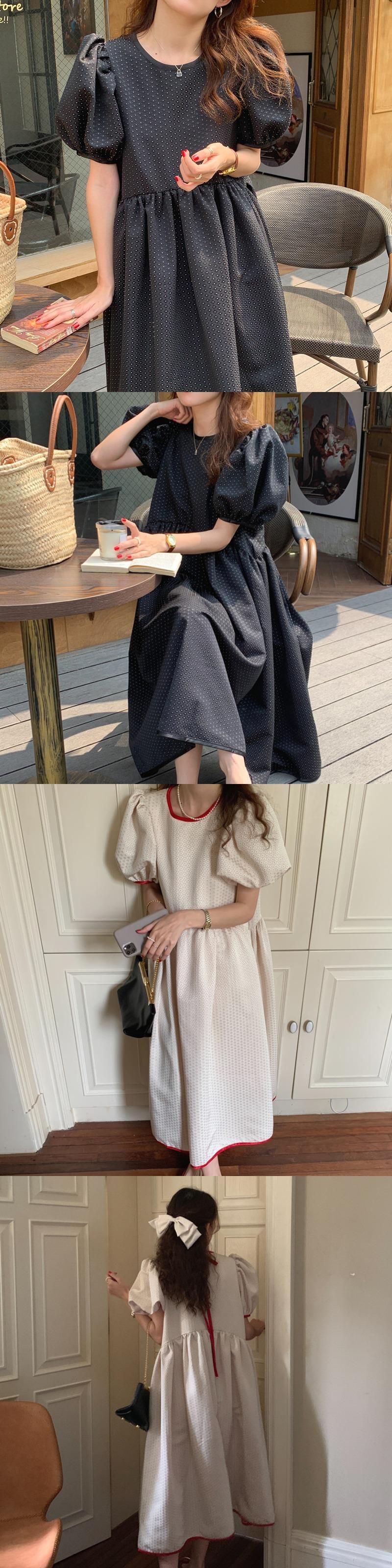 スタイルカラーラウンドネックスリーブジャカードドレス サマーロングスカート レース 夏物 Oネック 韓国婦人3200094673