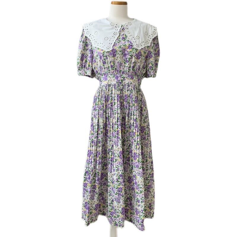 サマーレースカラースタンダードフローラルドレス スリーブスカート レトロ 夏物 花柄 韓国婦人38149621069