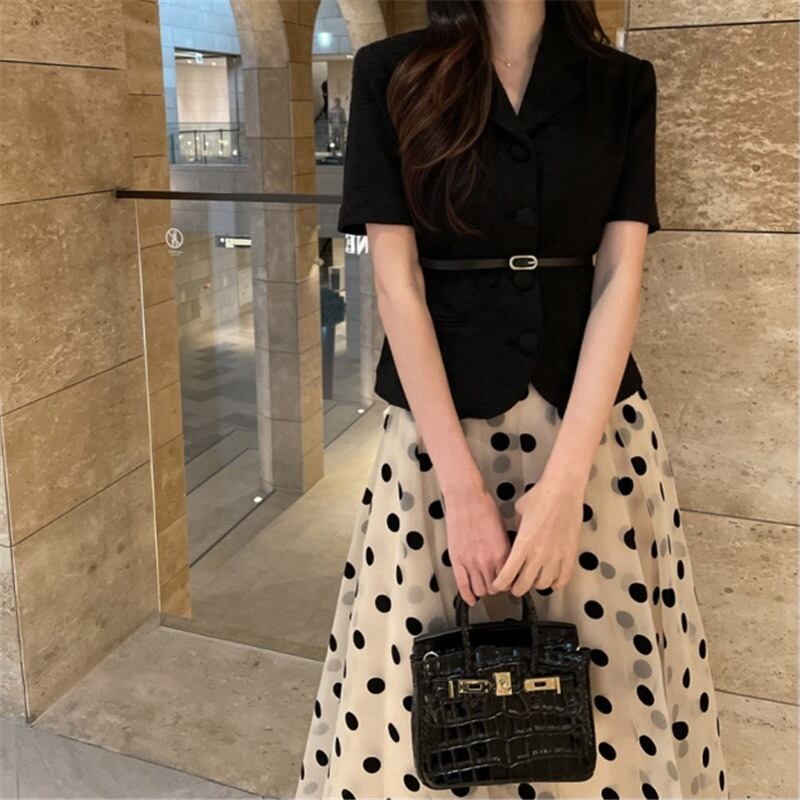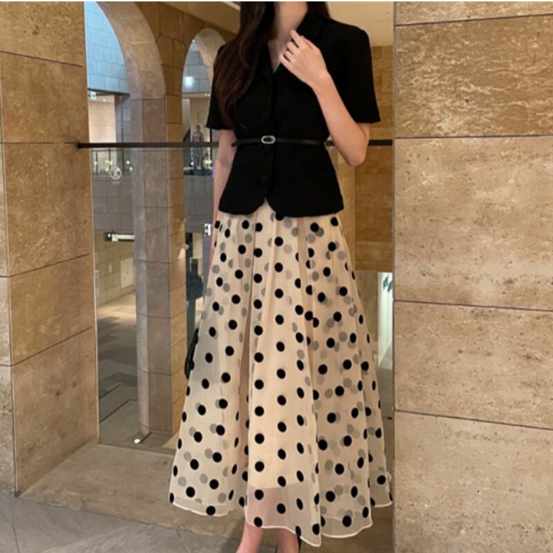サマーショートトップス ロング水玉スカート レディース ストリート 夏物 韓国婦人62006531436
