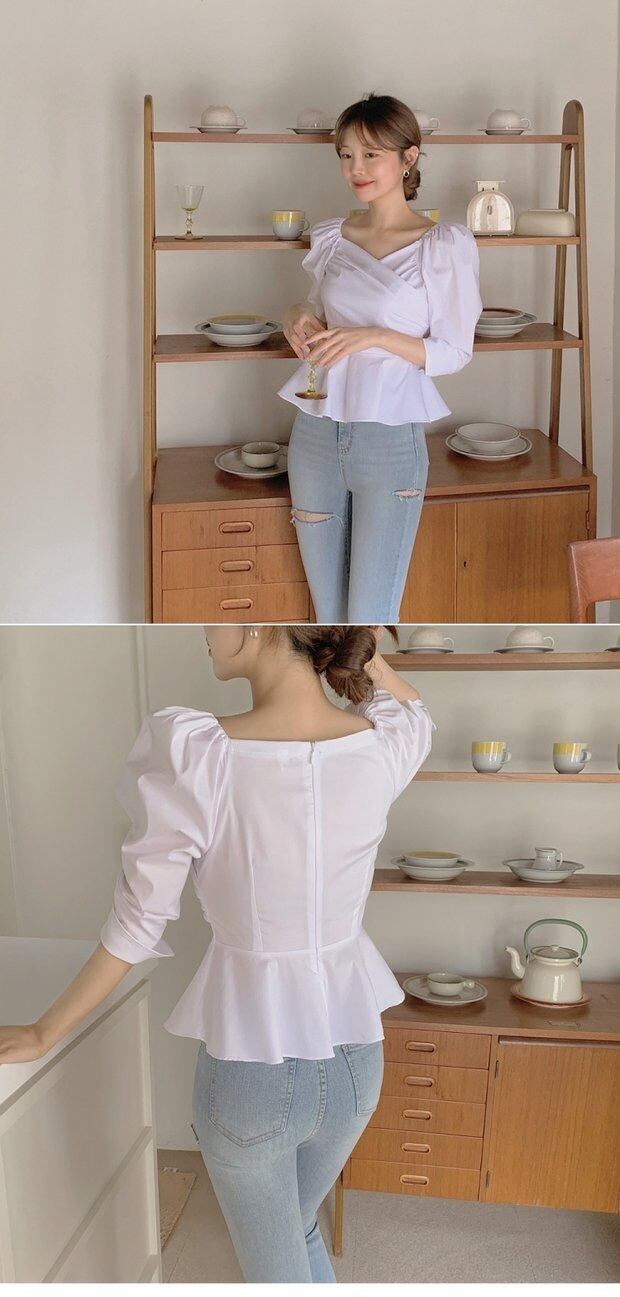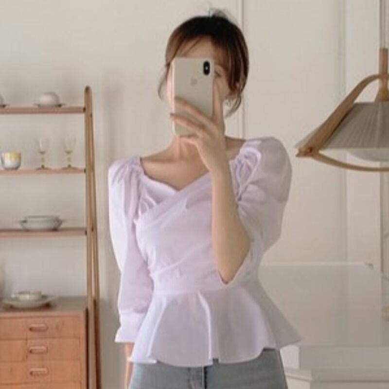 Vネックウェストシャツ トップス レディース ロング 大人ガーリー スウィート キュート カジュアル 韓国婦人57991264531