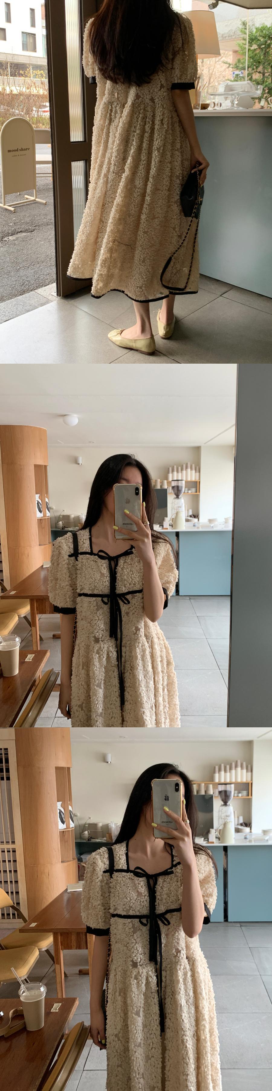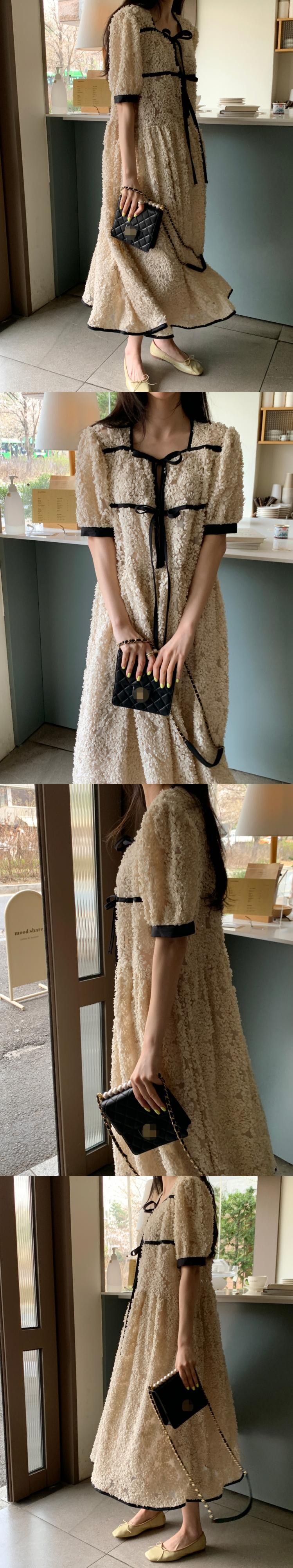 カラースタンダードジャカードスリーブドレス サマースカート レトロ 夏物 スクウェア 韓国婦人38774878061