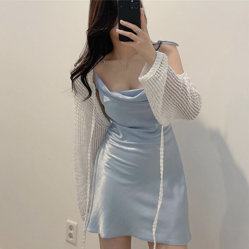 サマーニットサテンドレス 夏物 韓国婦人1514712419