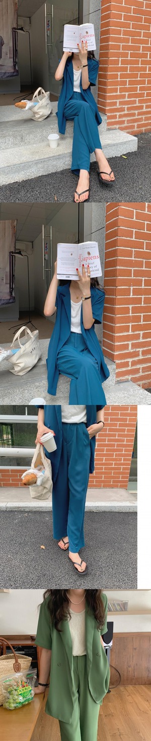 色:グリーンスーツトップ,ダークブルーのスーツトップ,グレーのスーツトップ,グリーントラウザーズS,グリーントラウザーズM,紺パンツS,紺パンツM,グレーパンツS,グレーのズボンM