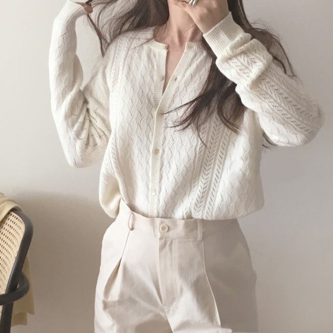 オータムスタンダードラウンドネックセーター レディースカーディガンジャケット ロング レトロ 秋物 Oネック 韓国婦人2757588724