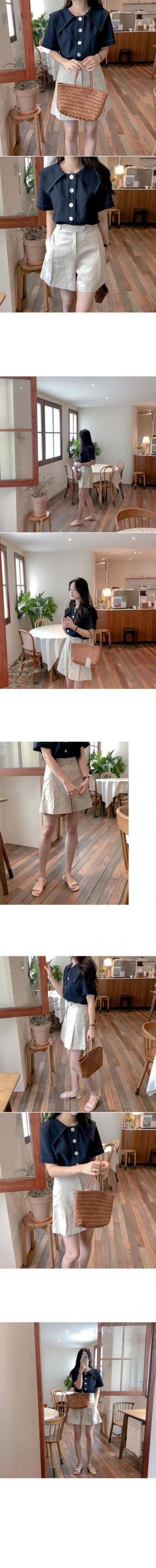 サマースタンダードハイウェストウェストボタンカジュアルルーズAラインショーツ レディース コットン レトロ 夏物 ブルマー 韓国婦人83616814736