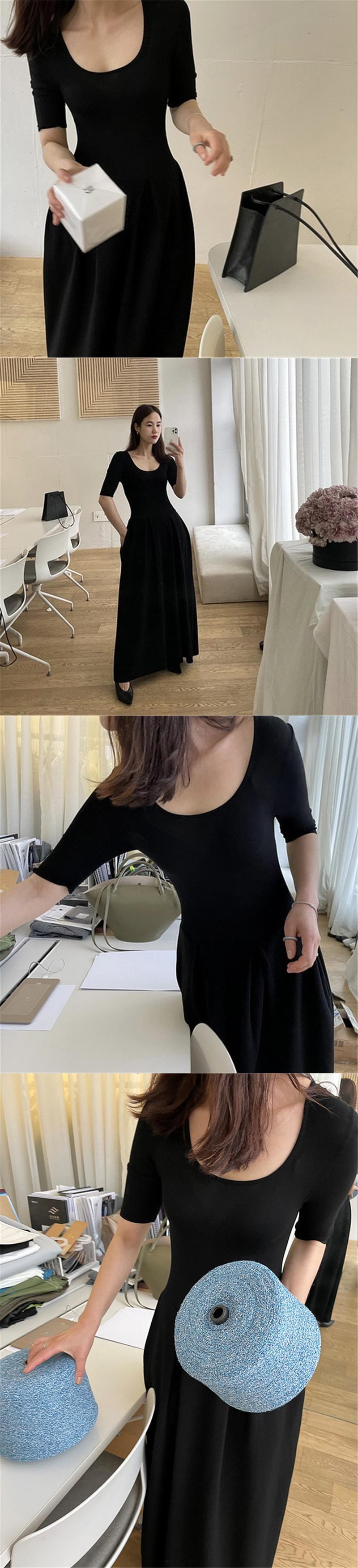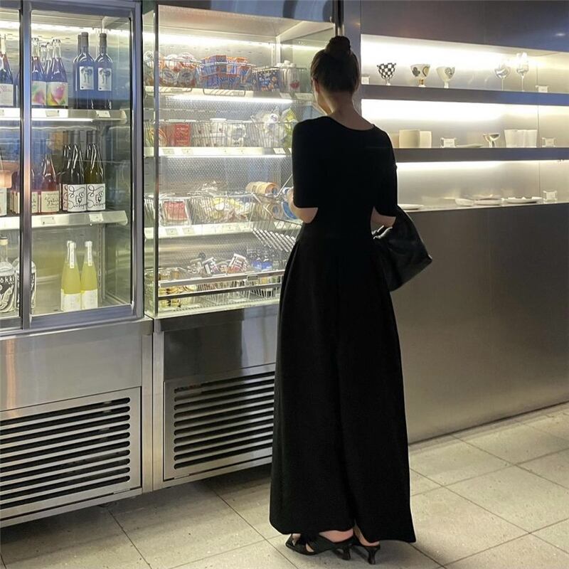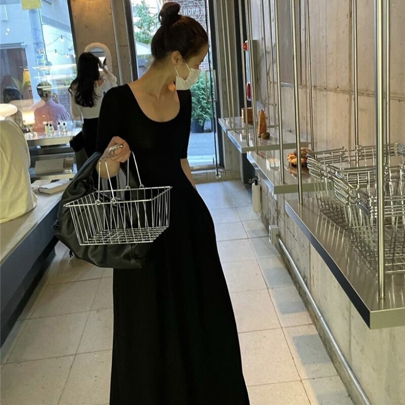 サマーブラックニットスタイルドレス ロングスカート 夏物 ステッチ 韓国婦人95556008099