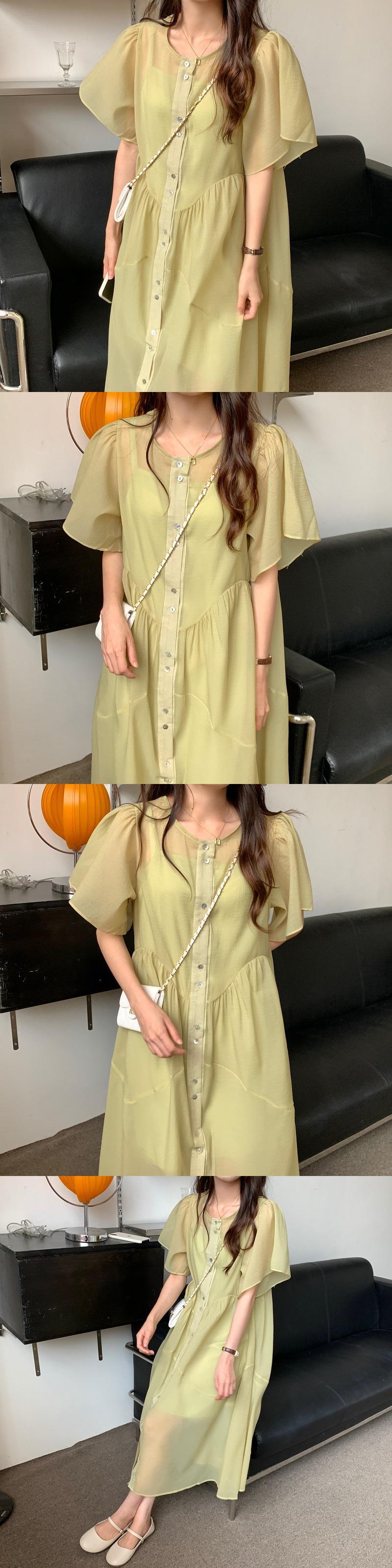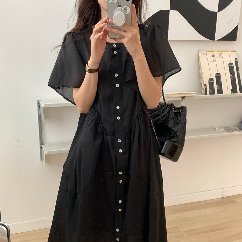 サマーソリッド カラーラウンドネックルーズドレス レディース 夏物 Oネック ソリッドカラー 韓国婦人83172846008