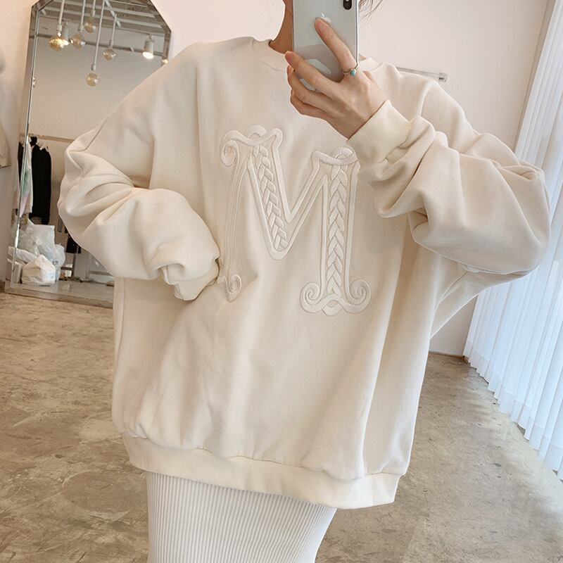オータム刺繍ホワイトルーズプルオーバー セーター 秋物 韓国婦人88643639494