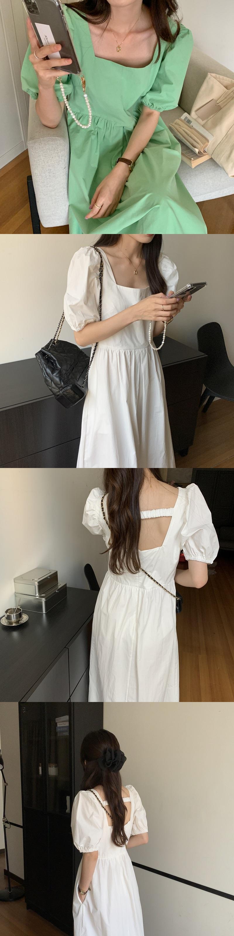 サマーホルタールーズスリーブドレス レディース 夏物 スクウェア 韓国婦人77148162676