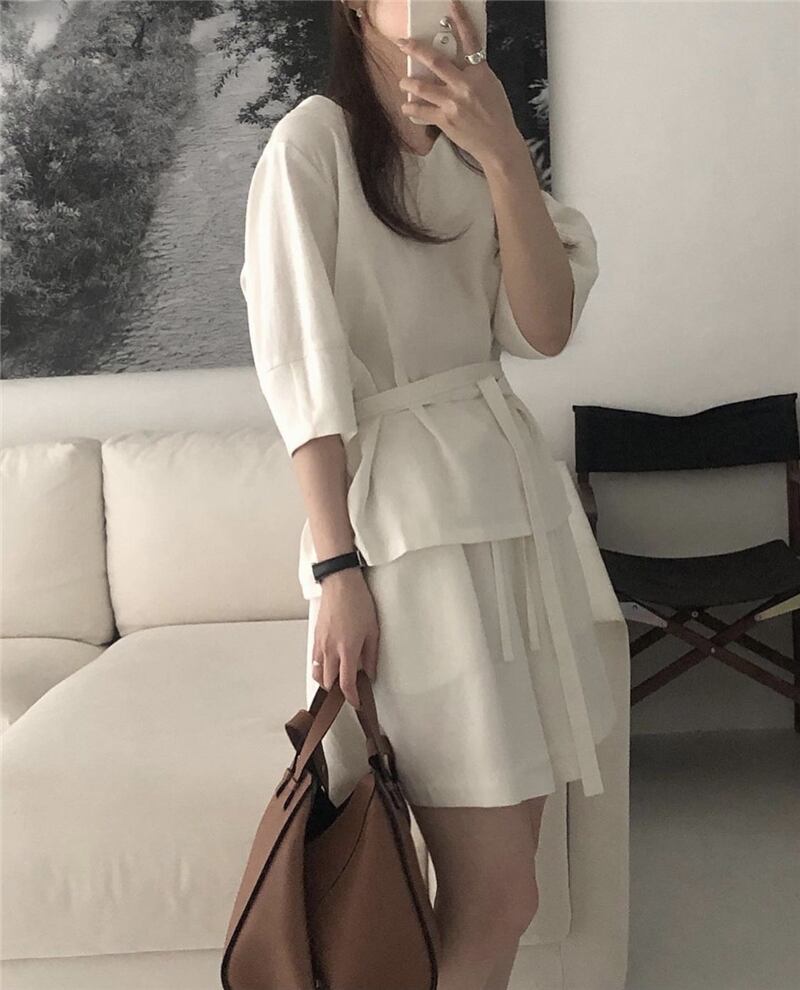 サマーウェストVネックスリーブトップス ショーツ 夏物 ブルマー 韓国婦人18969415951