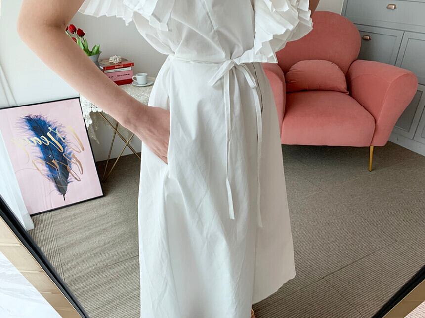 サマーVネックウェストレースドレス レディース 夏物 韓国婦人78180090095