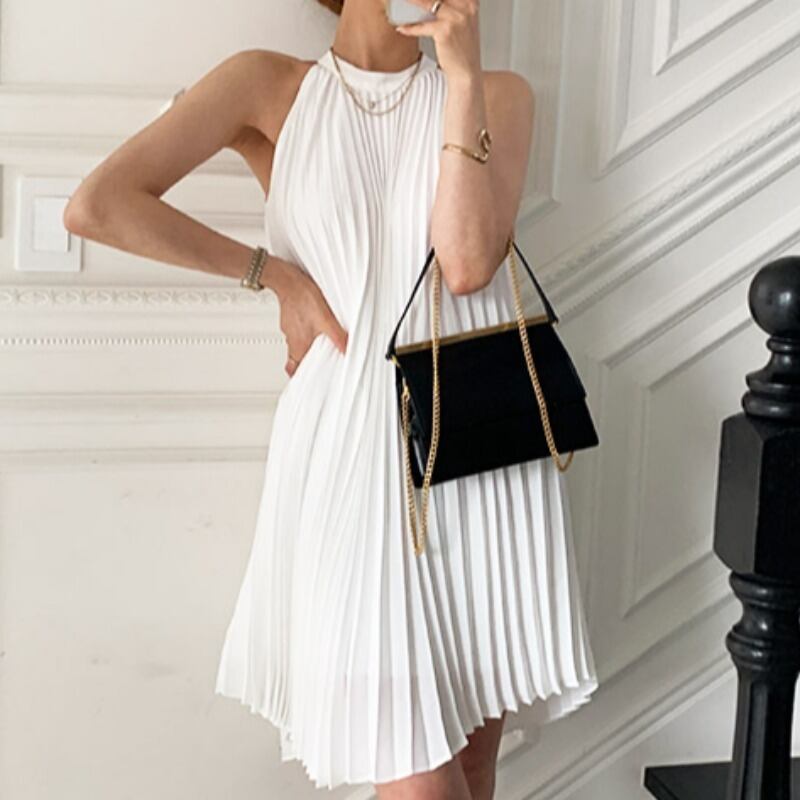 サマーホルタープリーツシフォンドレス スカート ベルト 夏物 ハーネス 韓国婦人60824210793