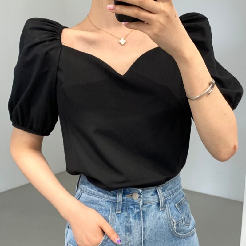 カラースリーブシフォンシャツ レディースサマートップス 大人ガーリー スウィート キュート カジュアル 夏物 ピュア 韓国婦人61717062180