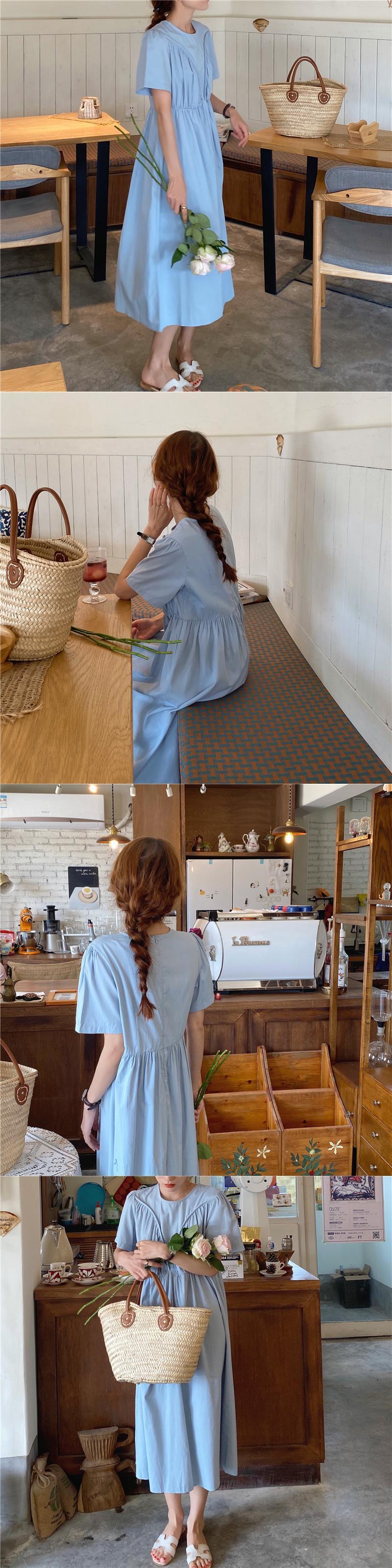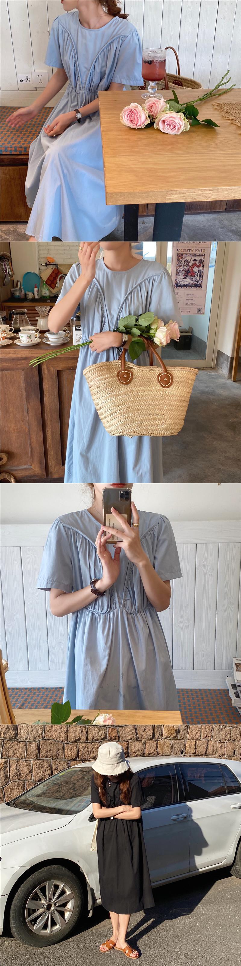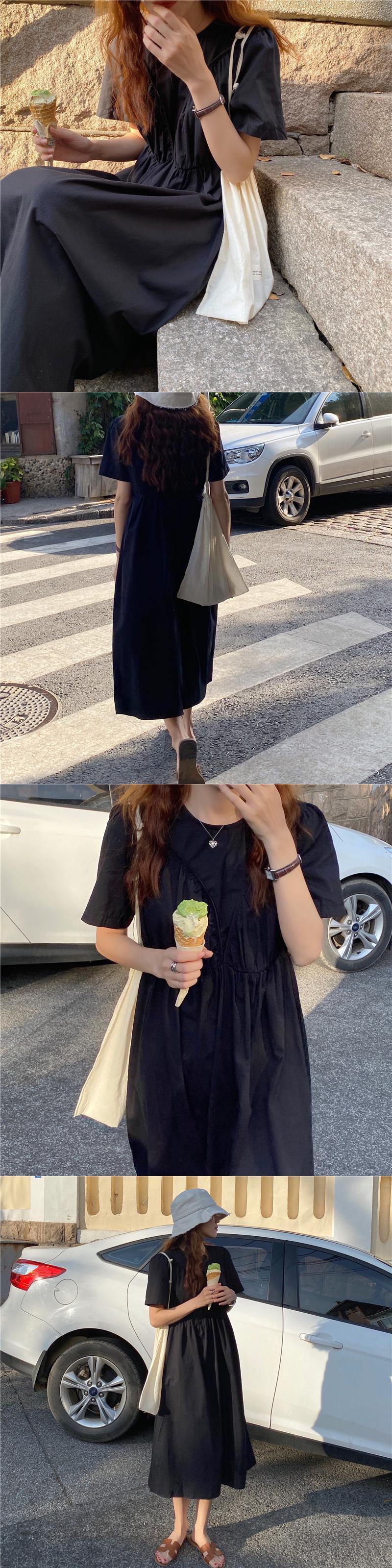 ドレス サマースタンダードラウンドネックスタイルウェストスカート レトロ 夏物 Oネック 韓国婦人91569106505