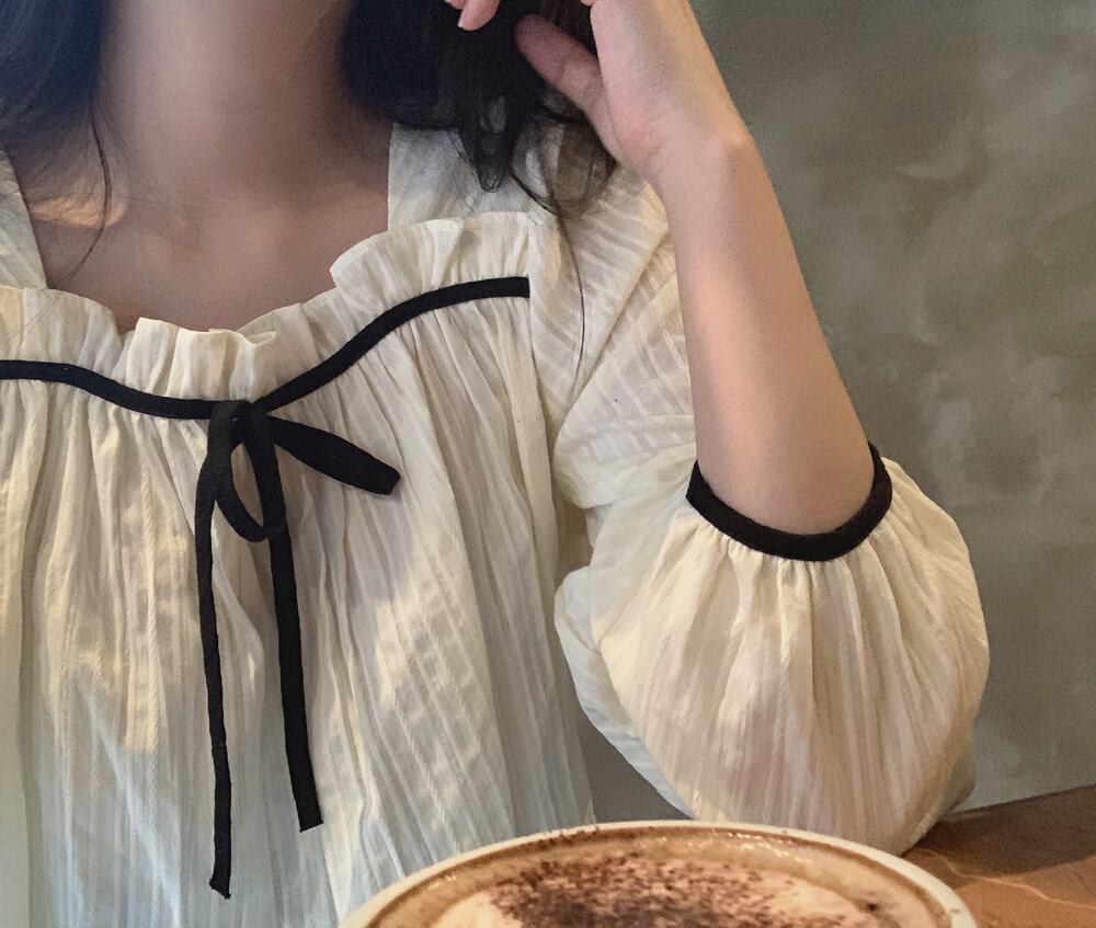 スプリングトップス ルーズ薄手スリーブプルオーバー シャツ 春物 スクウェア 韓国婦人38823533265