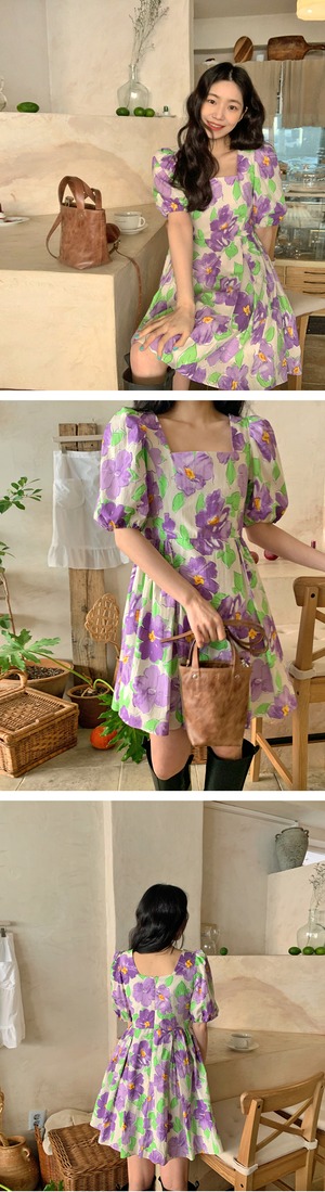 スカート サマーウェストカラードレス スリーブフローラル 夏物 花柄 スクウェア 韓国婦人82432118042
