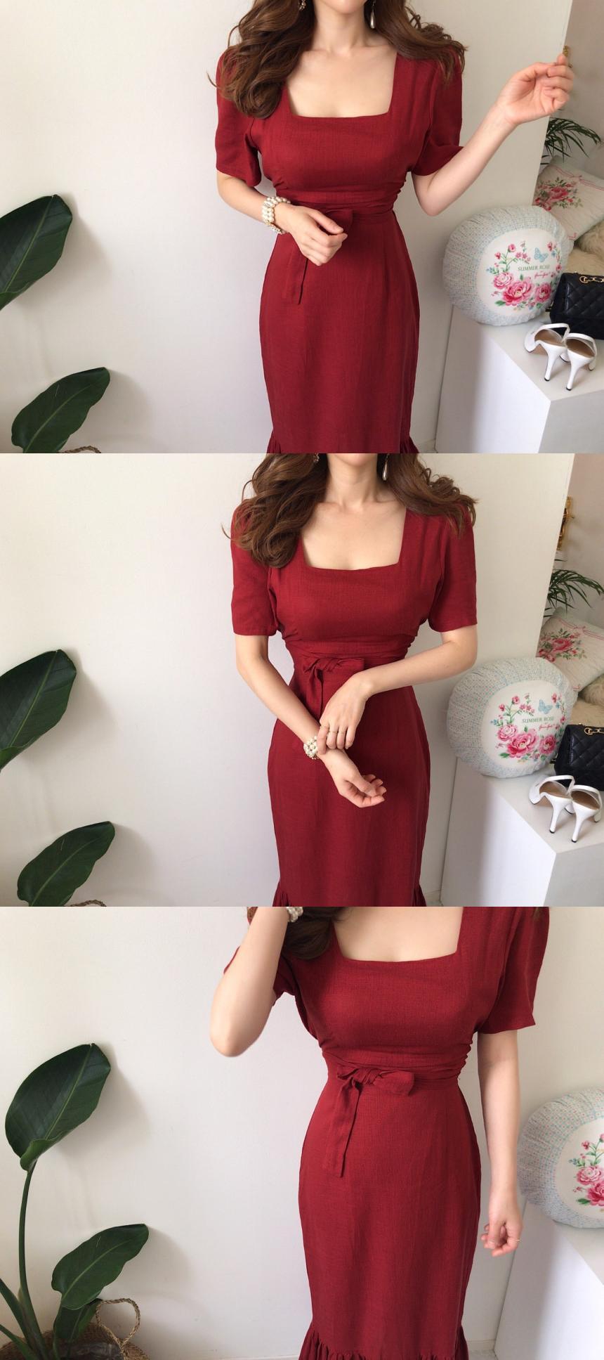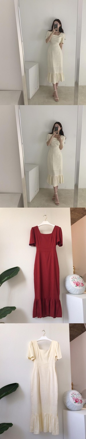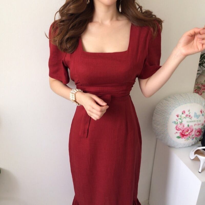 スカート サマースタンダードカラードレス ロング レトロ 夏物 スクウェア 韓国婦人66904342696