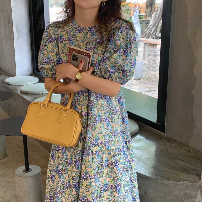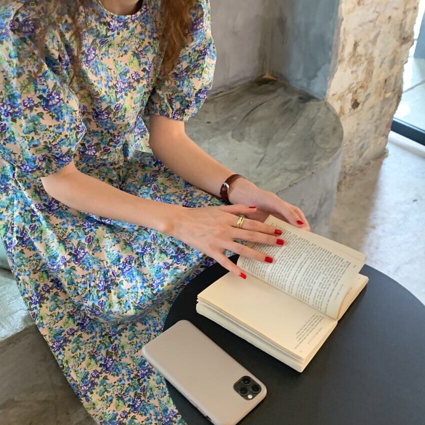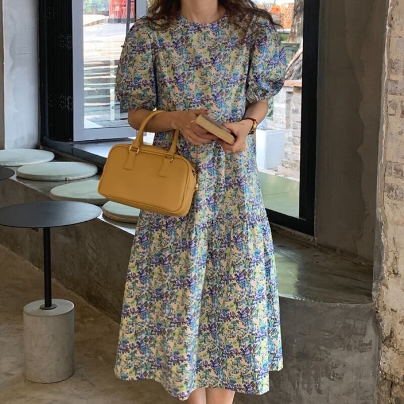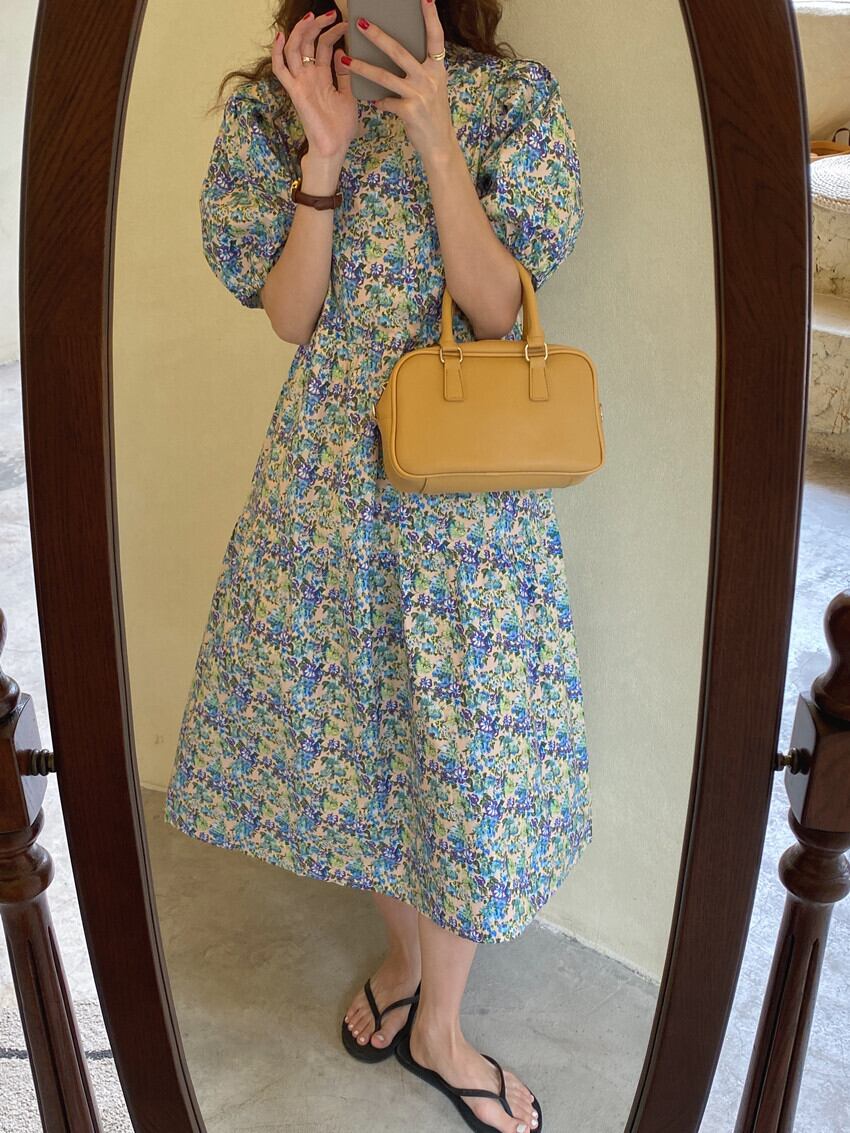スタイルスタンダードフローラルルーズスリーブラウンドネックドレス サマーロングスカート レトロ 大人ガーリー スウィート キュート カジュアル 夏物 花柄 Oネック 韓国婦人69664433786