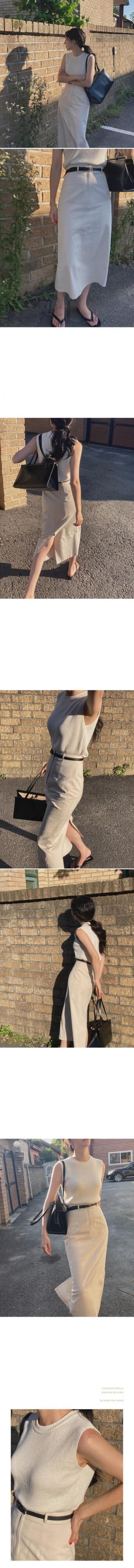 サマーラウンドネックノースリーブニットスリットスカート レディース 夏物 Oネック 韓国婦人21785840811