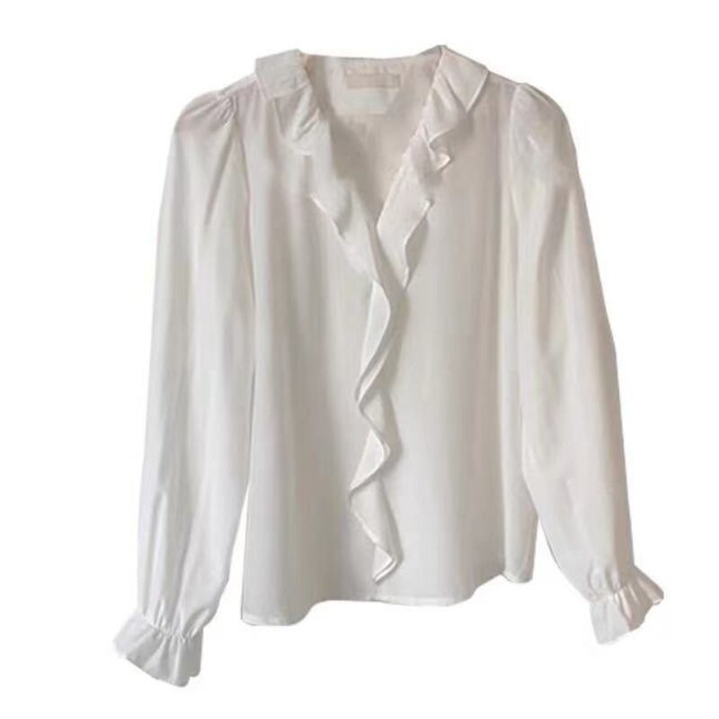 スタイルスプリングVネックブラウス カラーシャツ ロング 春物 ピュア 韓国婦人55883186577