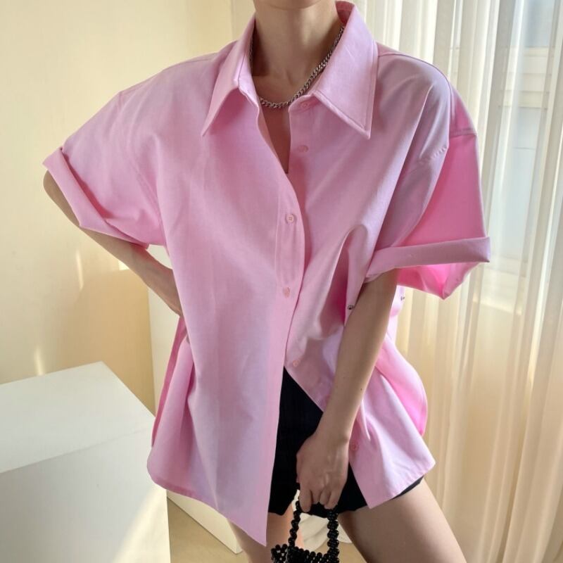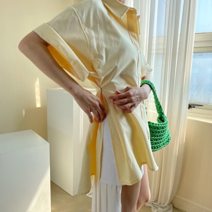 サマールーズサイドスリットウェストシャツ トップス レディース 夏物 韓国婦人53800548728