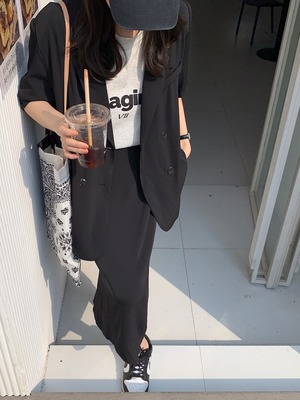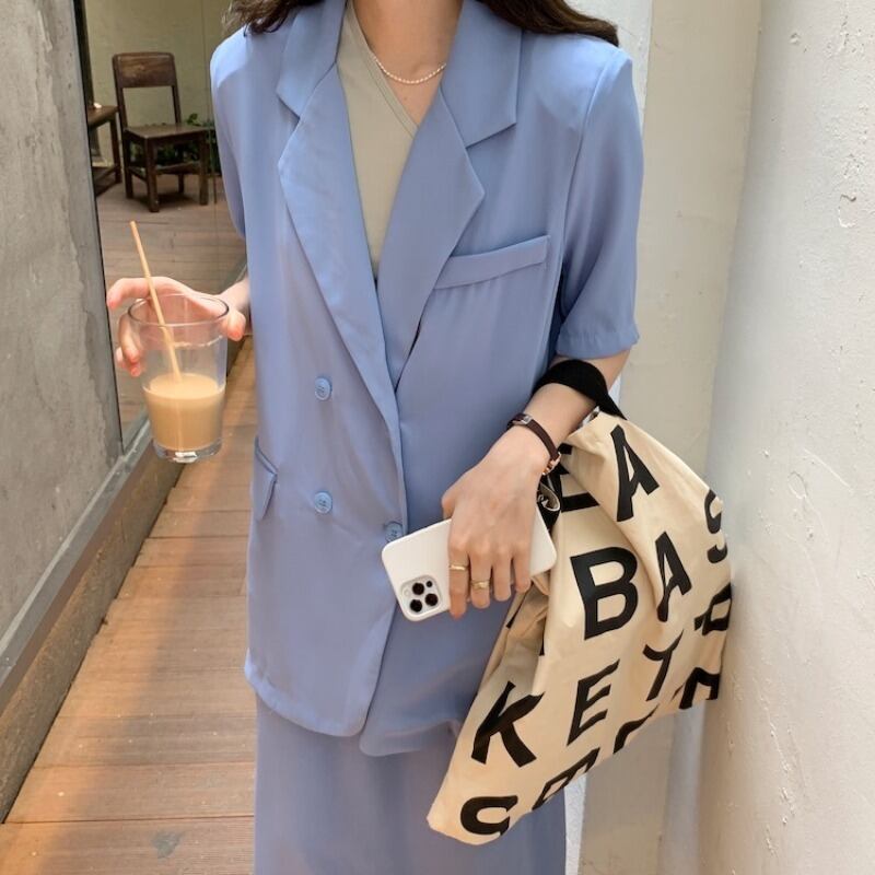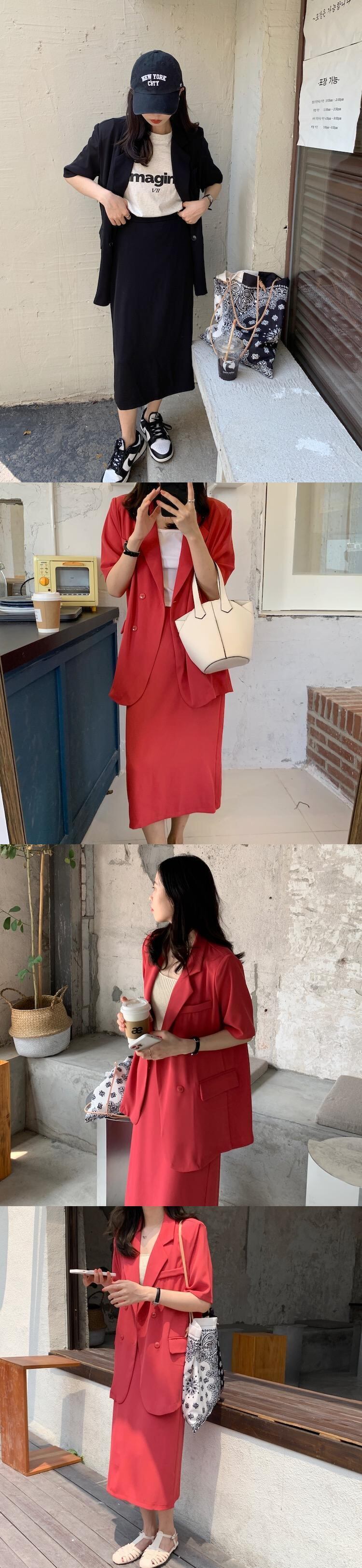 スタンダードカジュアルジャケット ハイウェストスカート サマー レトロ 夏物 韓国婦人61278054358