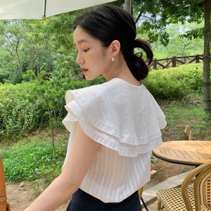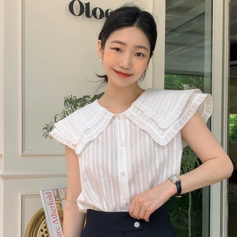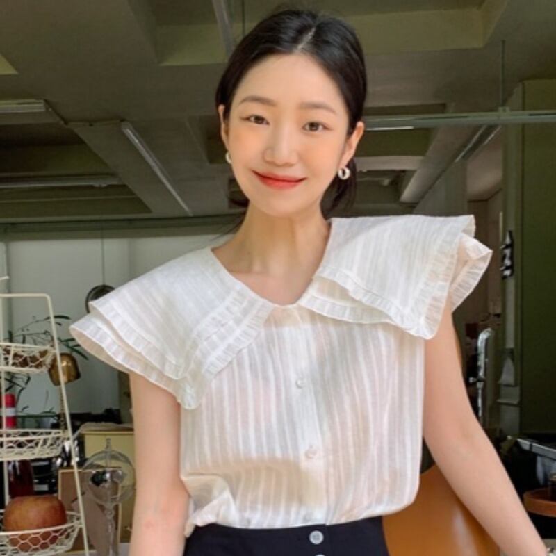 サマージャカードダブルカラーノースリーブシャツ トップス レディース 夏物 ピュア 韓国婦人10530408837