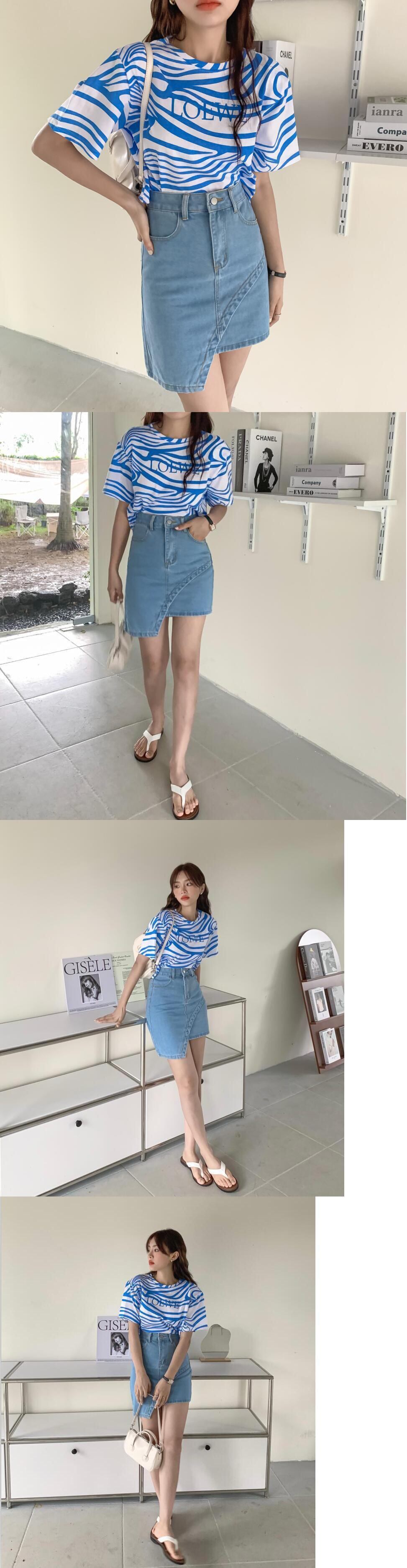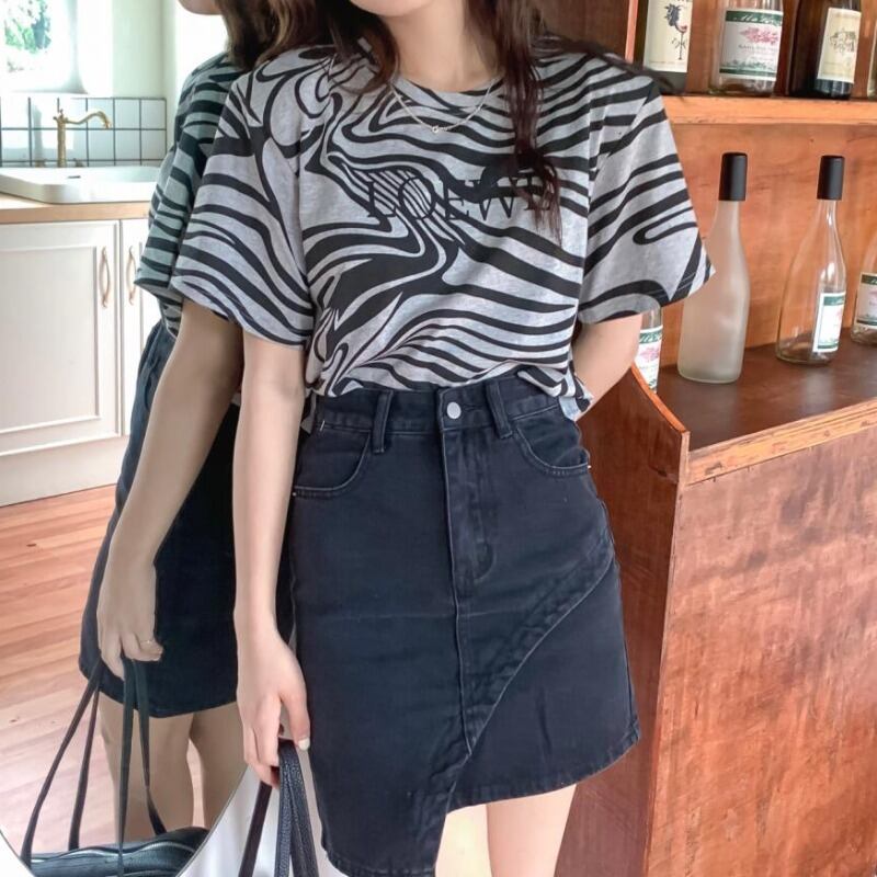 サマースタンダードパターンプリントTシャツ スカート レトロ 夏物 韓国婦人56398145075