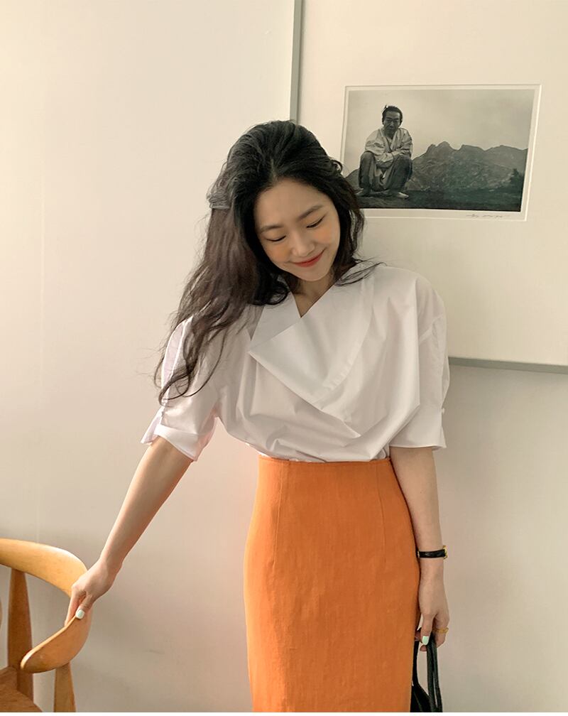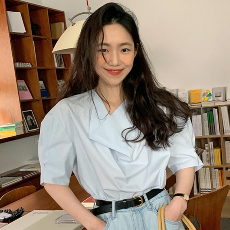 ミニマリストスタイルカラースリーブシャツ サマートップス 夏物 韓国婦人85649649975