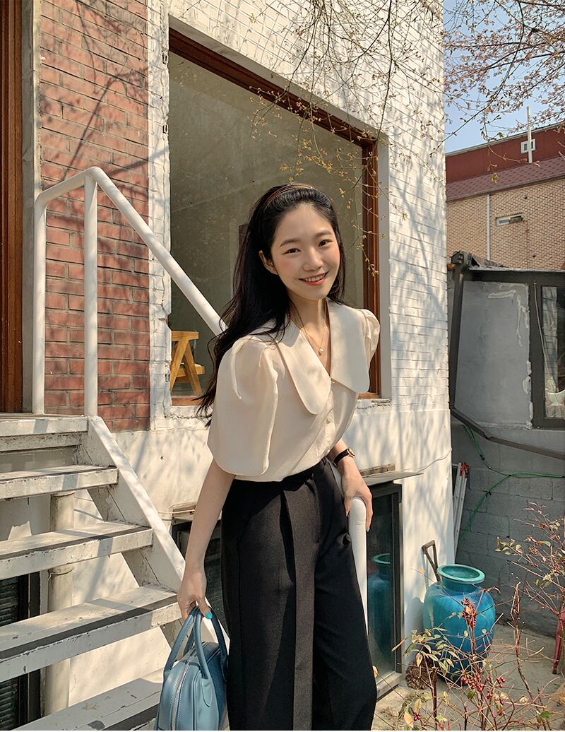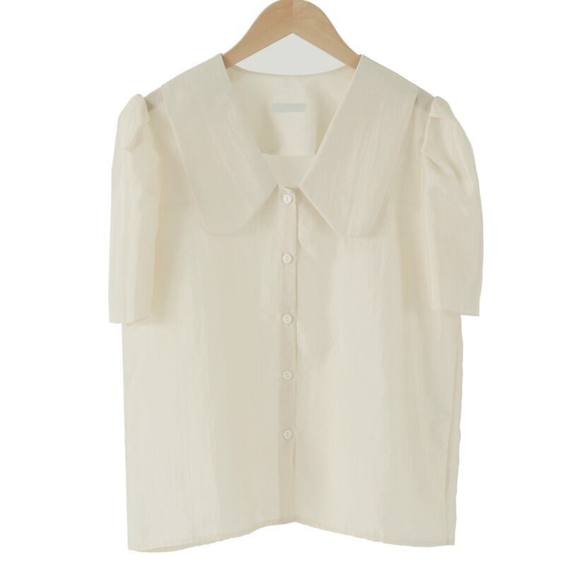 シャツ サマーカラールーズ薄手スタンダードスタイルスリーブトップス レトロ 大人ガーリー スウィート キュート カジュアル 夏物 韓国婦人9945315381