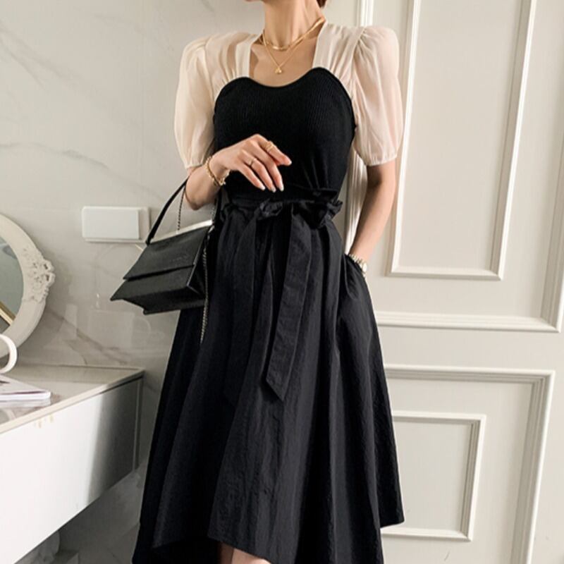 サマーメッシュセーター スカート レディース 夏物 スクウェア ステッチ 韓国婦人54687467627