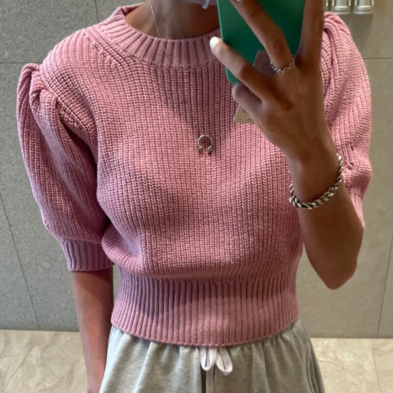 スタンダードスタイル薄手セーター レディースサマーラウンドネックルーズカジュアルトップス レトロ 夏物 Oネック 韓国婦人61952851252