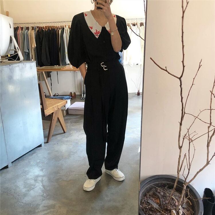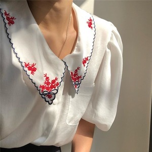 サマースタンダード刺繍レースカラールーズスリーブ薄手シャツ レディース レトロ 夏物 韓国婦人45025191924