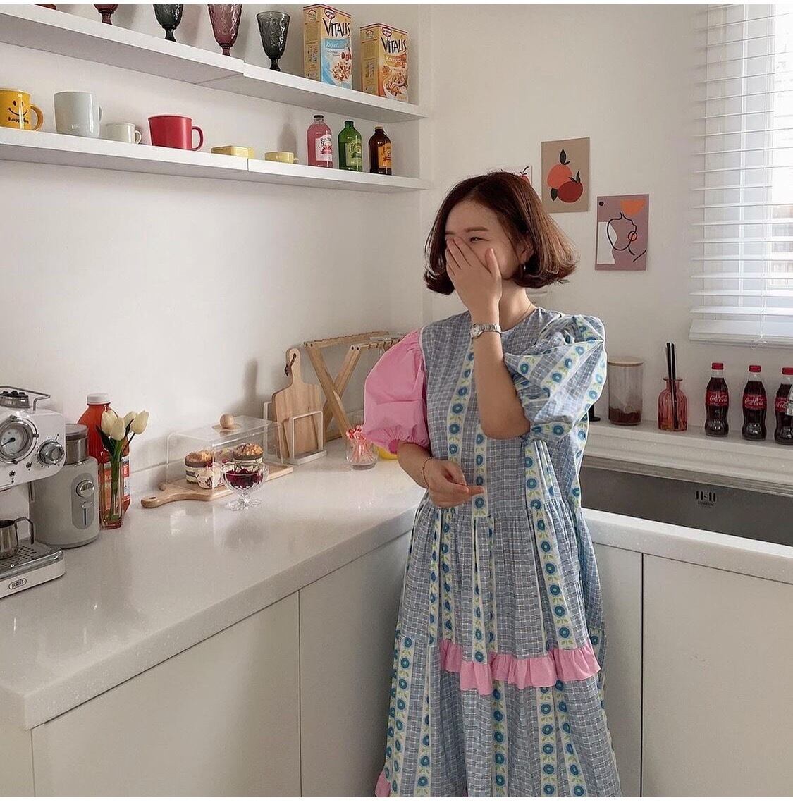 ドレス ラウンドネックロングスカート サマーカラールーズ 大人ガーリー スウィート キュート カジュアル 夏物 Oネック ステッチ 韓国婦人36146676629