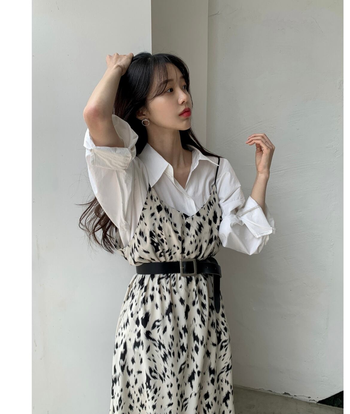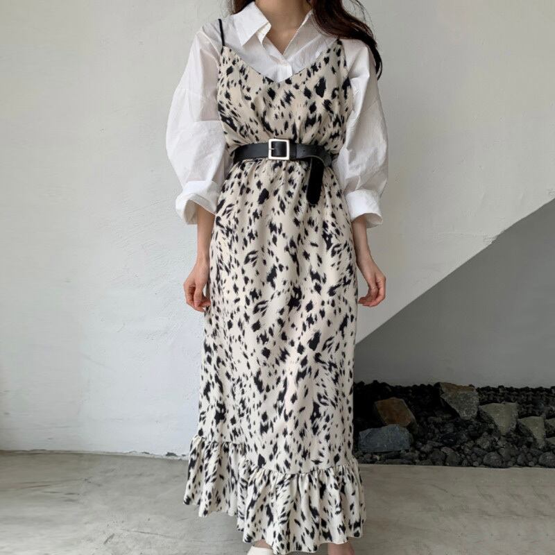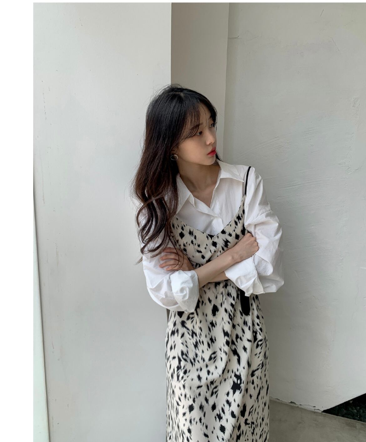 レディースシャツ レオパードプリント柄ドレス サマー ロング 夏物 韓国婦人21968058083