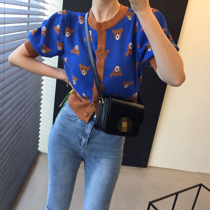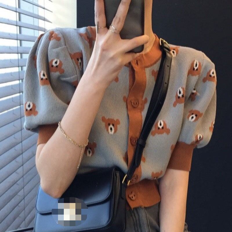 セーター ルーズスタイルプリント柄薄手ボタンカーディガントップス サマー 夏物 韓国婦人30670056412