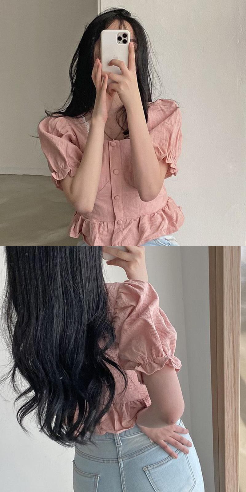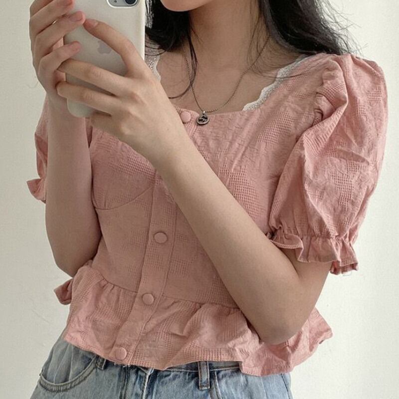 サマースタイルレーススリーブショートシャツ レディーススタンダードジャケット レトロ 夏物 スクウェア ステッチ 韓国婦人90272104238